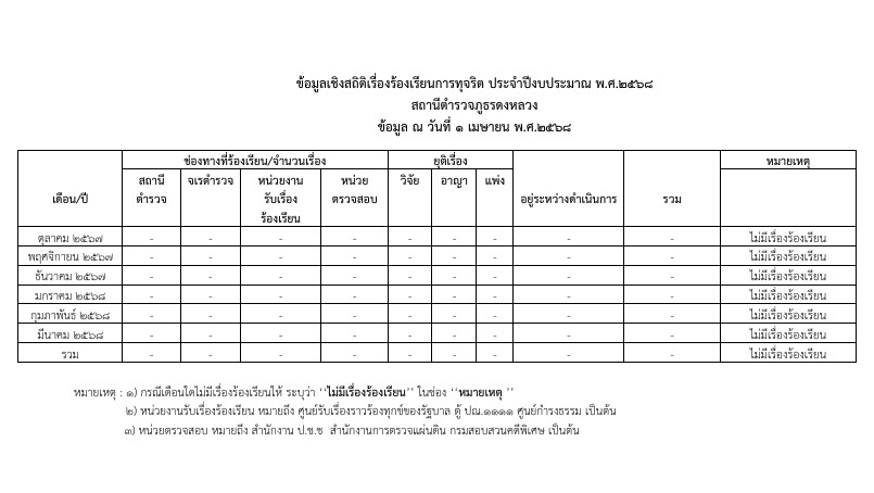 ข้อมูลสถิติเรื่องร้องเรียนการทุจริตและประพฤติมิชอบของเจ้าหน้าที่ของสถานีตำรวจภูธรดงหลวง