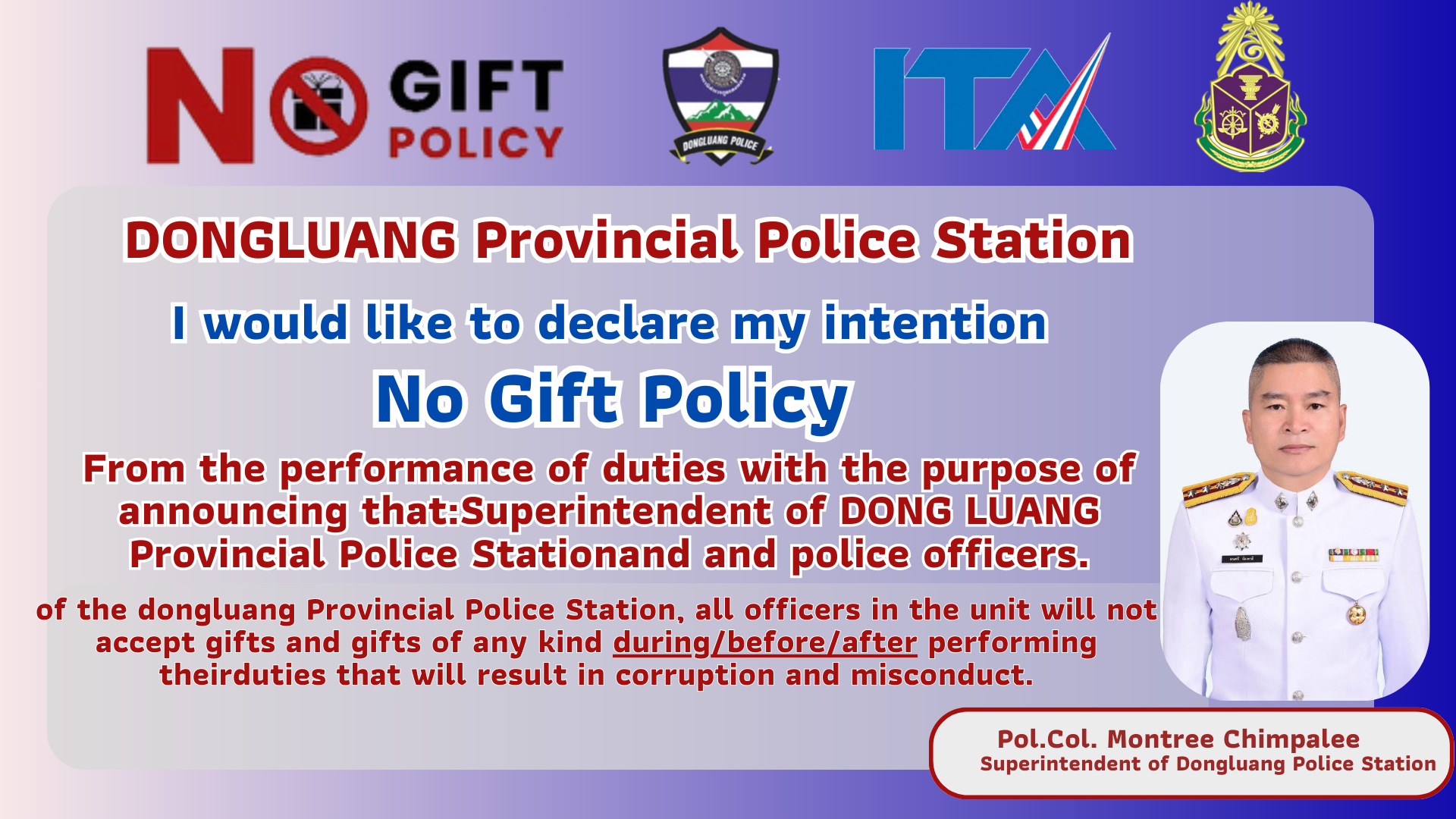 ♥ แสดงประกาศนโยบายการต่อต้านการรับสินบน (Anti-Bribery Policy) โดยหัวหน้าสถานีตำรวจคนปัจจุบัน ในปีงบประมาณ พ.ศ. 2568 และให้เผยแพร่เป็นภาษาไทยและภาษาอังกฤษ